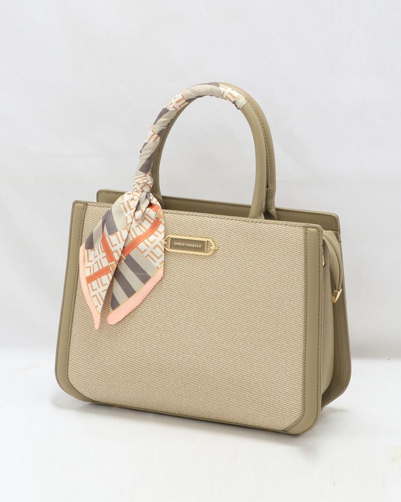 ارتقي بإطلالتك مع هذه الحقيبة النسائية الراقية. تتميز الحقيبة بتفاصيلها الدقيقة والأنثوية مثل الوشاح المزين بالنقوش الأنيقة. تصميمها العصري والمميز يجمع بين الأناقة العملية والفخامة، مما يجعلها الحقيبة المثالية لإطلالاتك اليومية والمناسبات الخاصة.